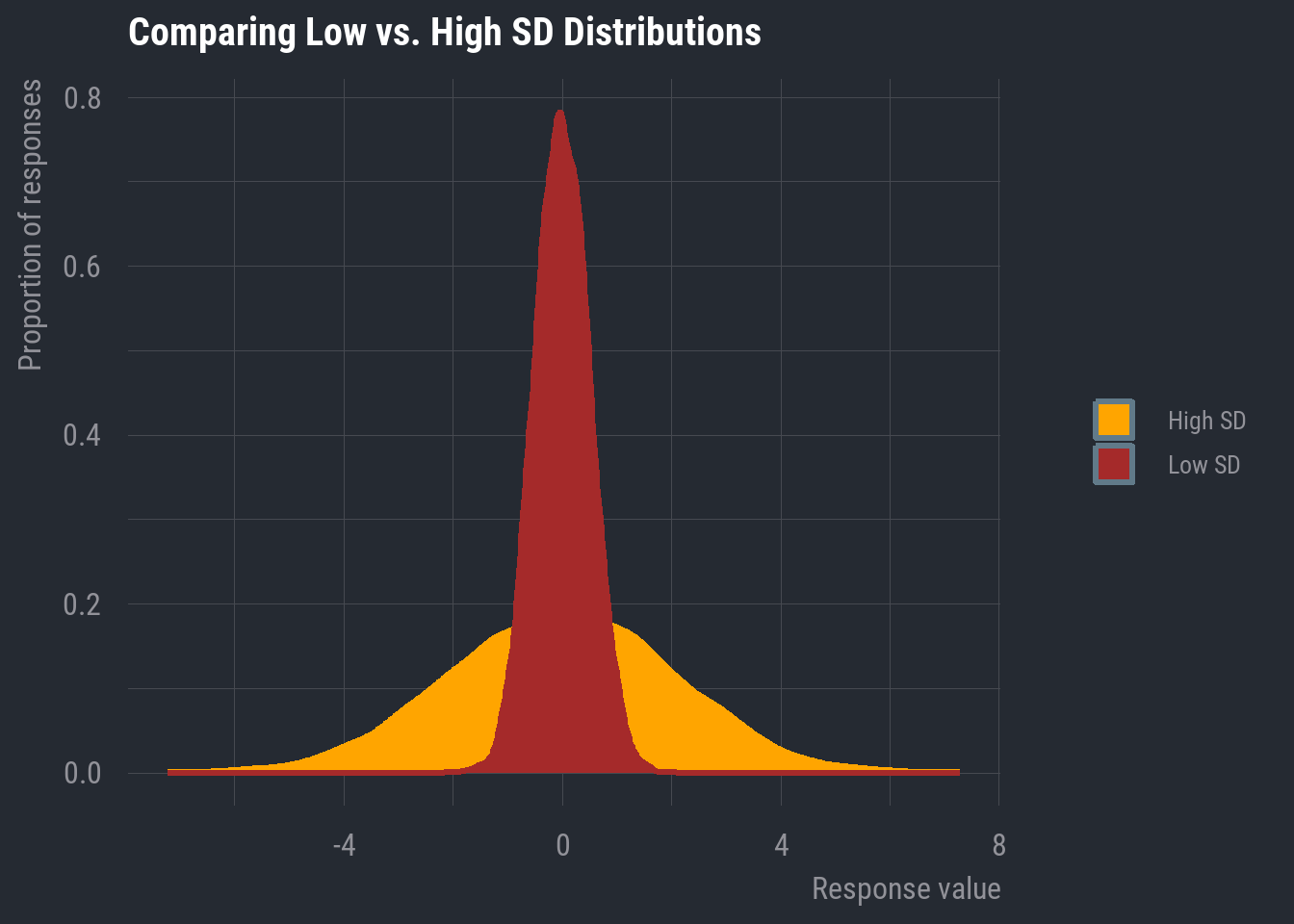 This is one of the more commonly reported dispersion metrics for numeric data. The standard deviation is a measure of how much the average value varies from the mean. In plainer terms, it’s a measure that tells us how spread out the distribution is.