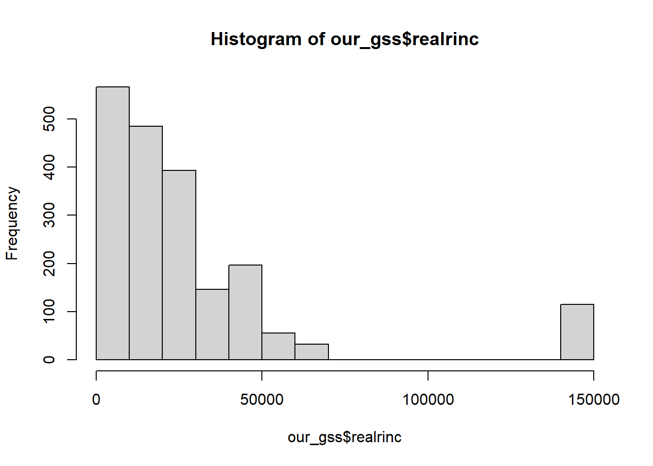 However, this visualization does suggest that we need to do some thinking about the appropriate measure of central tendency for realrinc